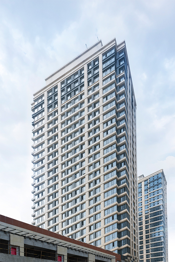 辦公區(qū)沿基地西側(cè)布置,靠近基地西側(cè)的大型景觀公園,使整個建筑群最大程度的享受到城市中央景觀,辦公區(qū)相對獨(dú)立,同時底層架空綠化與商業(yè)街區(qū)流線分開,提升了辦公的品質(zhì)。