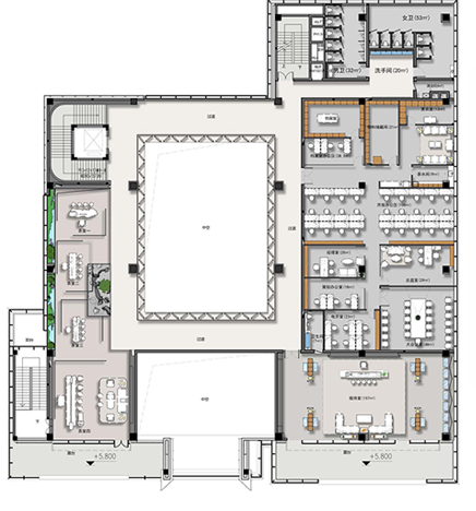 地下一層設(shè)施宴會(huì)廳及泳池,健身設(shè)施等,可以用來滿足不同訪客的需求,其次設(shè)置內(nèi)庭院與之相接,供訪客休憩,私密性好,有悠然自得之感。