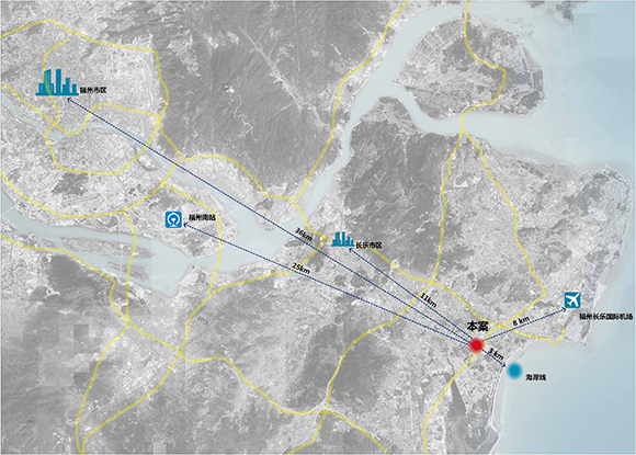 福州市長樂區(qū)作為福州市的門戶,面積約為658 平方公里。項(xiàng)目基地位于長樂區(qū)文松路以西,沙壺路以北,距機(jī)場約10 公里車程。南部有東湖VR 小鎮(zhèn),吸引人群消費(fèi),示范區(qū)北側(cè)規(guī)劃為商業(yè)區(qū), 大大的提高基礎(chǔ)生活服務(wù)。
