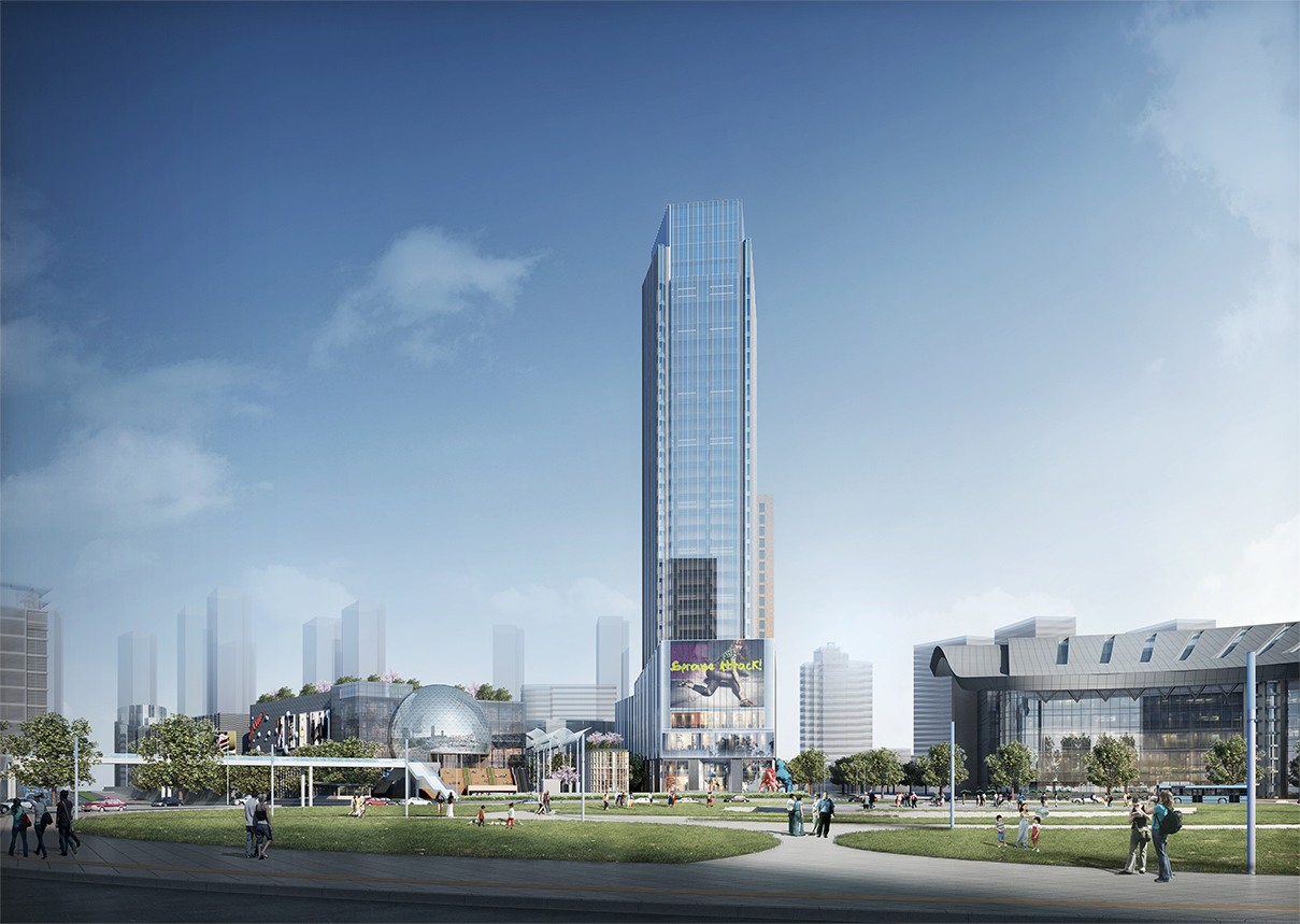 設(shè)置下層廣場(chǎng)與地鐵站無縫對(duì)接;設(shè)置商業(yè)連廊,放大主要出入口,在主要位置放置 LED 電子屏裝點(diǎn)入口廣場(chǎng);設(shè)計(jì)立體交通以匯聚光谷廣場(chǎng)地上地下以及一期步行街人流;屋頂造型獨(dú)特。設(shè)計(jì)師通過一系列方式體現(xiàn)“光”的概念,力圖讓每一個(gè)經(jīng)過光谷廣場(chǎng)的人都能感受其特點(diǎn),從而打造一道全新的城市亮麗風(fēng)景線。