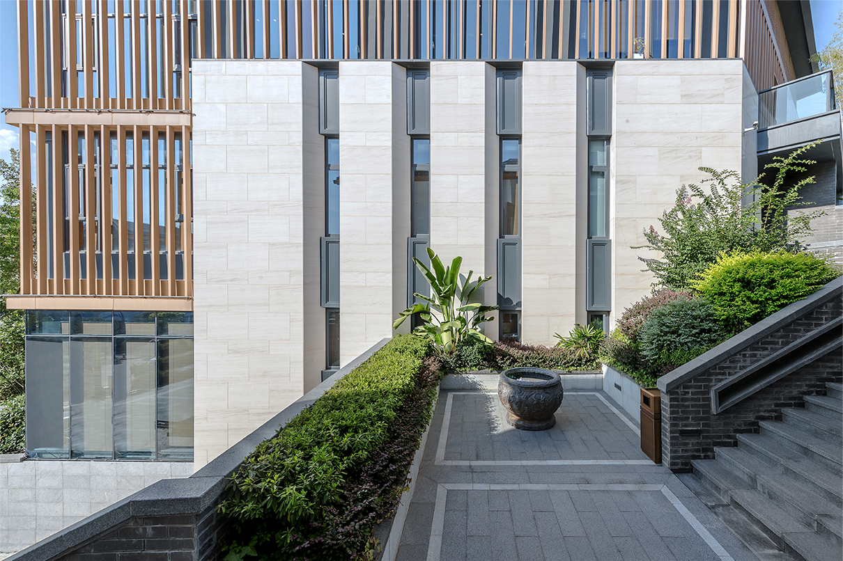 山地院墅定義休閑山居典范,強(qiáng)調(diào)組團(tuán)圍合感,形成宅中有園,園中有屋,屋中有院,院中有樹,粉墻黛瓦木色,重塑仿宋民居風(fēng)貌。