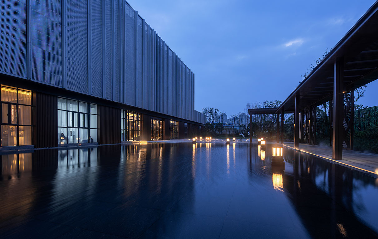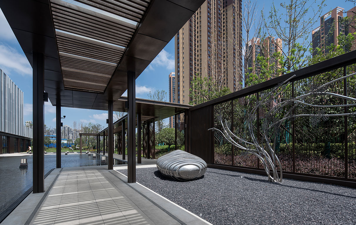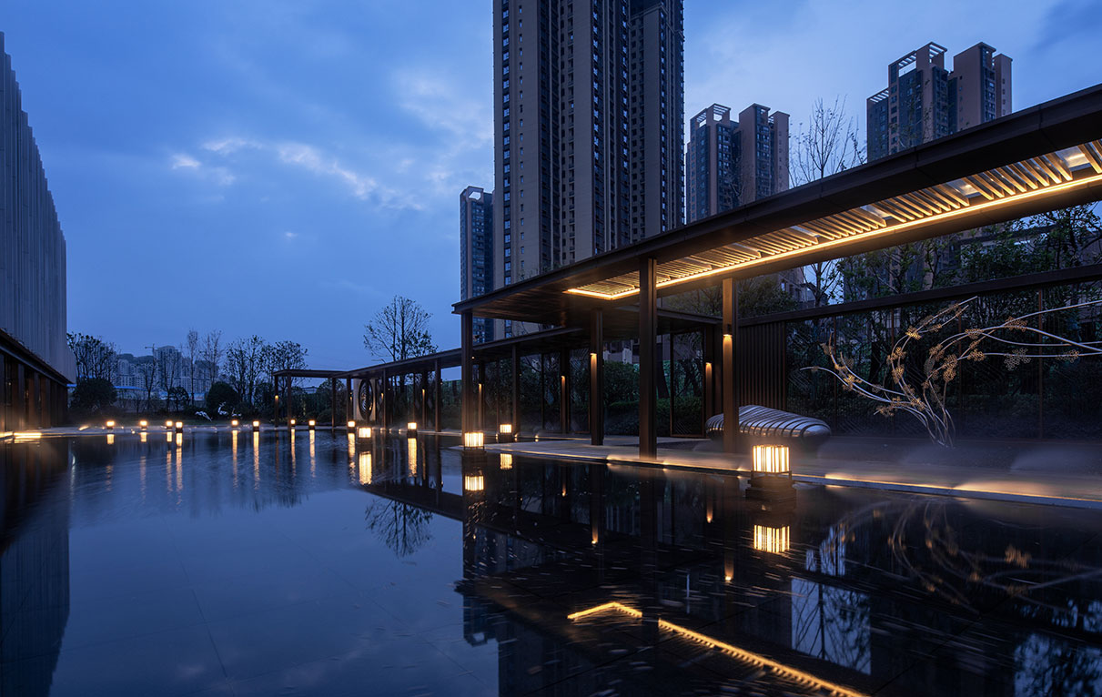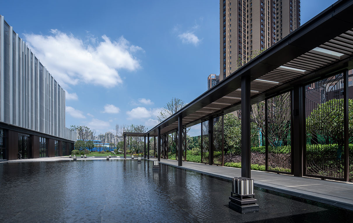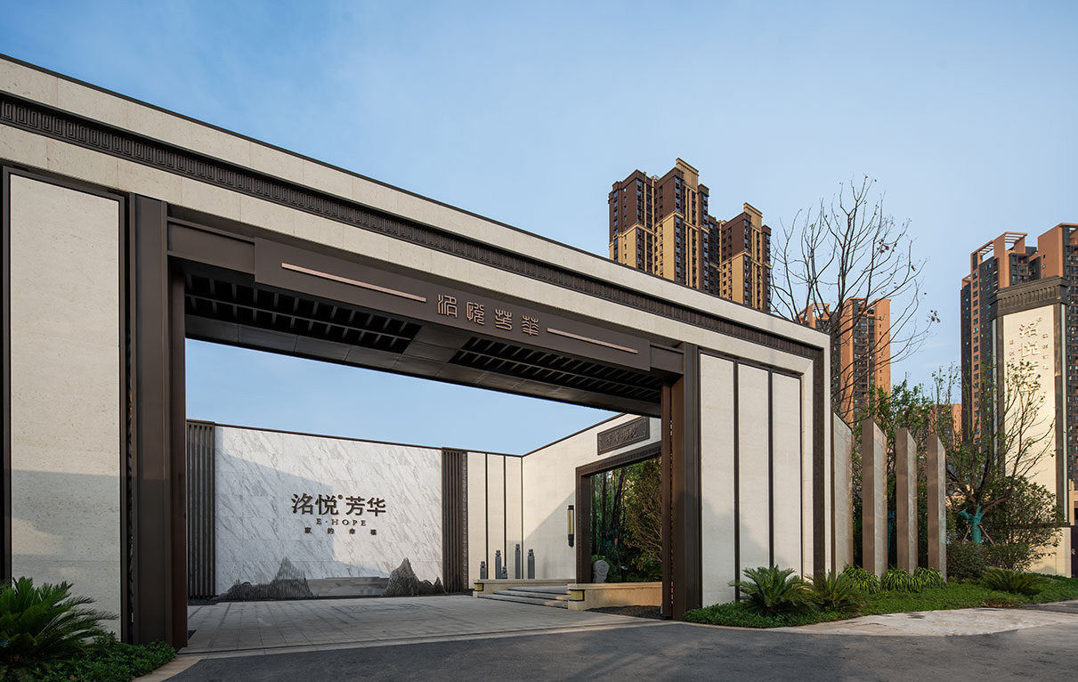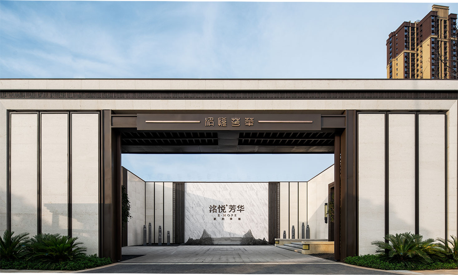 武漢洺悅芳華示范區(qū)位于湖北省武漢市經(jīng)濟(jì)技術(shù)開發(fā)區(qū),項目所屬區(qū)域在三環(huán)線以內(nèi)為主城區(qū)。在項目場地中,商業(yè)建筑的南側(cè)與項目場地西南角距離較近,對示范區(qū)入口區(qū)域產(chǎn)生了干擾。因此,對示范區(qū)出入口方式的選擇是本項目的重中之重。另外,在現(xiàn)有場景中如何將“五進(jìn)”空間融入到示范區(qū)內(nèi)用景觀勾畫出空間的秩序,同時營造出新中式景觀的神韻感,這也是項目的一大挑戰(zhàn)。