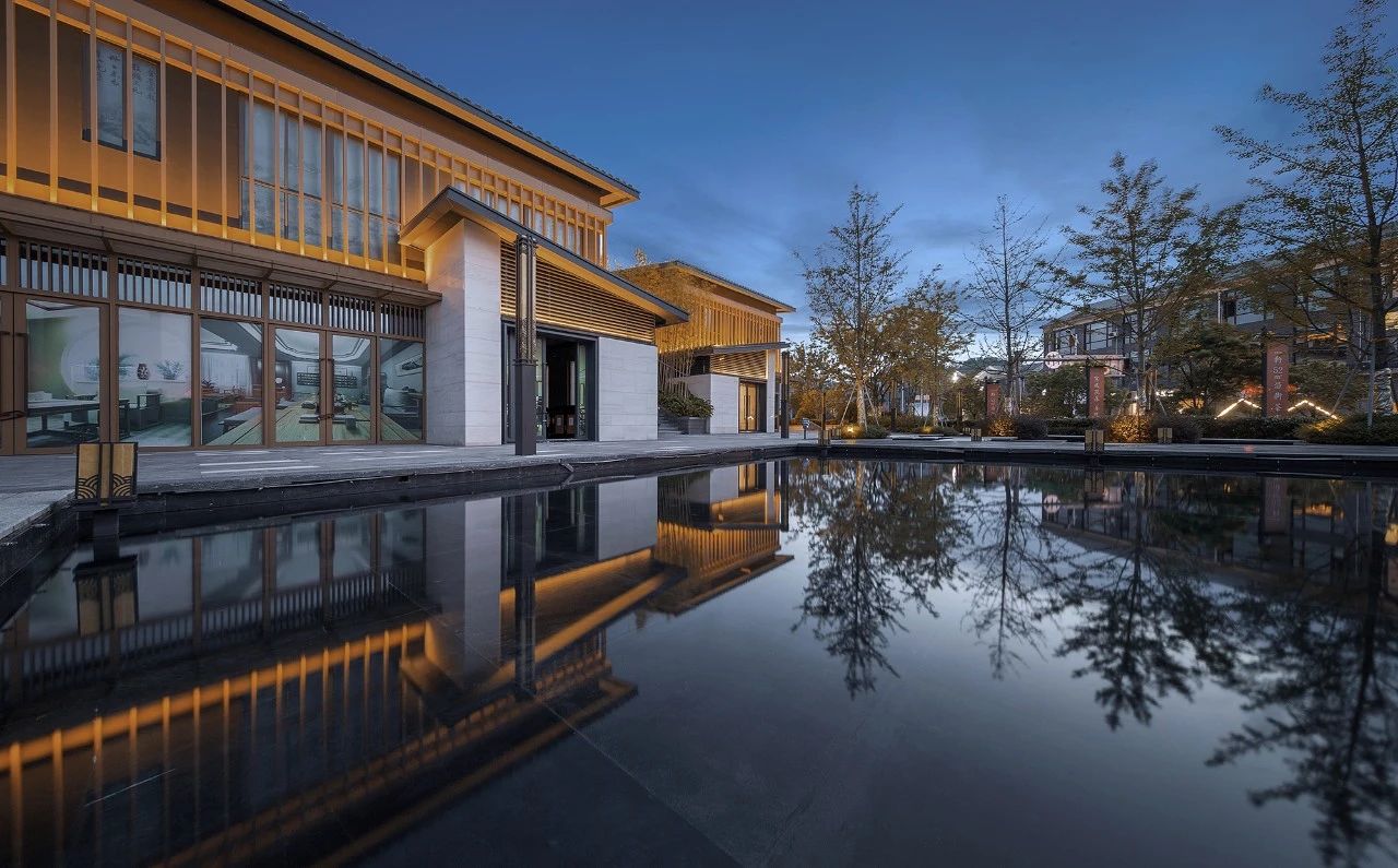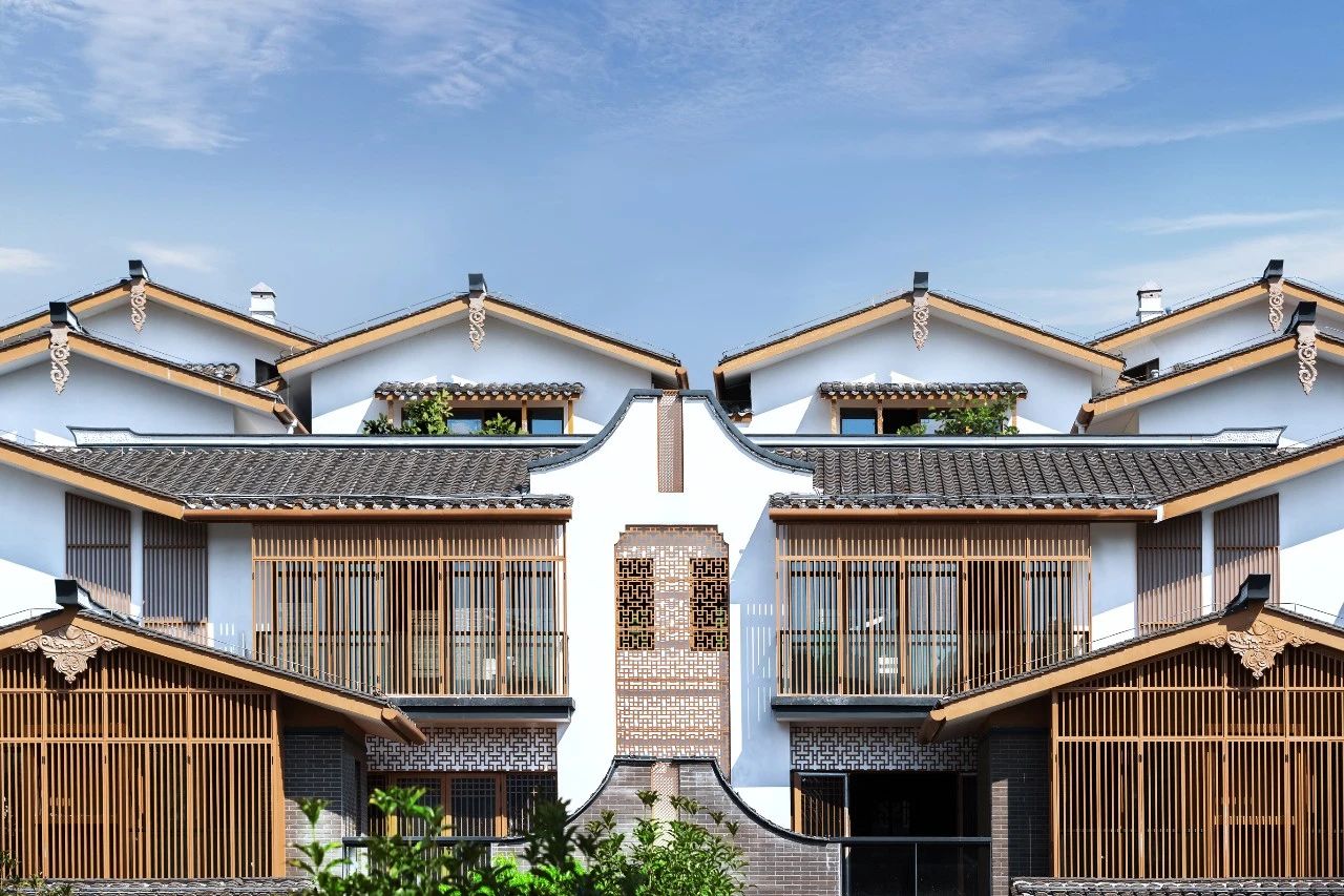 山地院墅定義休閑山居典范,強(qiáng)調(diào)組團(tuán)圍合感,形成宅中有園,園中有屋,屋中有院,院中有樹,粉墻黛瓦木色,重塑仿宋民居風(fēng)貌。