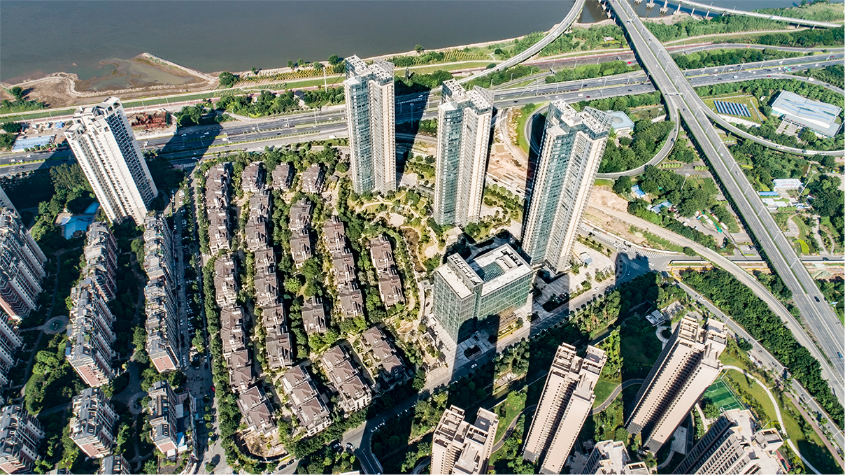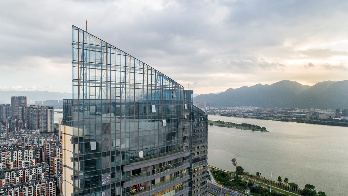地塊位處橘園洲大橋立交旁,是烏龍江沿線地塊承上啟下的重要節(jié)點。項目從城市設計的角度出發(fā),將4棟高層體量規(guī)整為3棟,向上堆疊,形成130米、140米、150米三棟超高層建筑。建筑外立面采用玻璃結合陶板的全干掛幕墻系統(tǒng),三角形頂部幕墻的形體設計帶有江畔揚帆的寓意,從建筑表皮及建筑形體兩方面區(qū)別于沿線其他的高層住宅樹立項目的江畔橋頭地標性建筑形象。