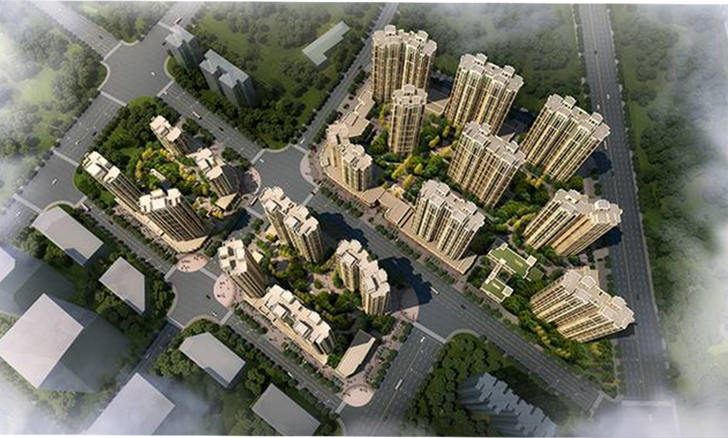 項目位于鄭州市中原區(qū)五龍口片區(qū),是五龍口片區(qū)舊稱改造工程中的首開項目。項目用地面積約8.9萬平方米,總綜合容積率達到4.68。除了較高的容積率要求外,區(qū)外已建建筑及待建建筑綜合形成了本項目最大的設計障礙住宅日照要求。在滿足基礎設計條件的基礎,設計師用合理的規(guī)劃布局、創(chuàng)新的戶型及精致的法式立面造型詮釋了高容積率住區(qū)的價值點。