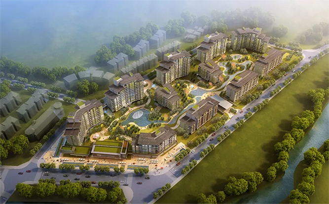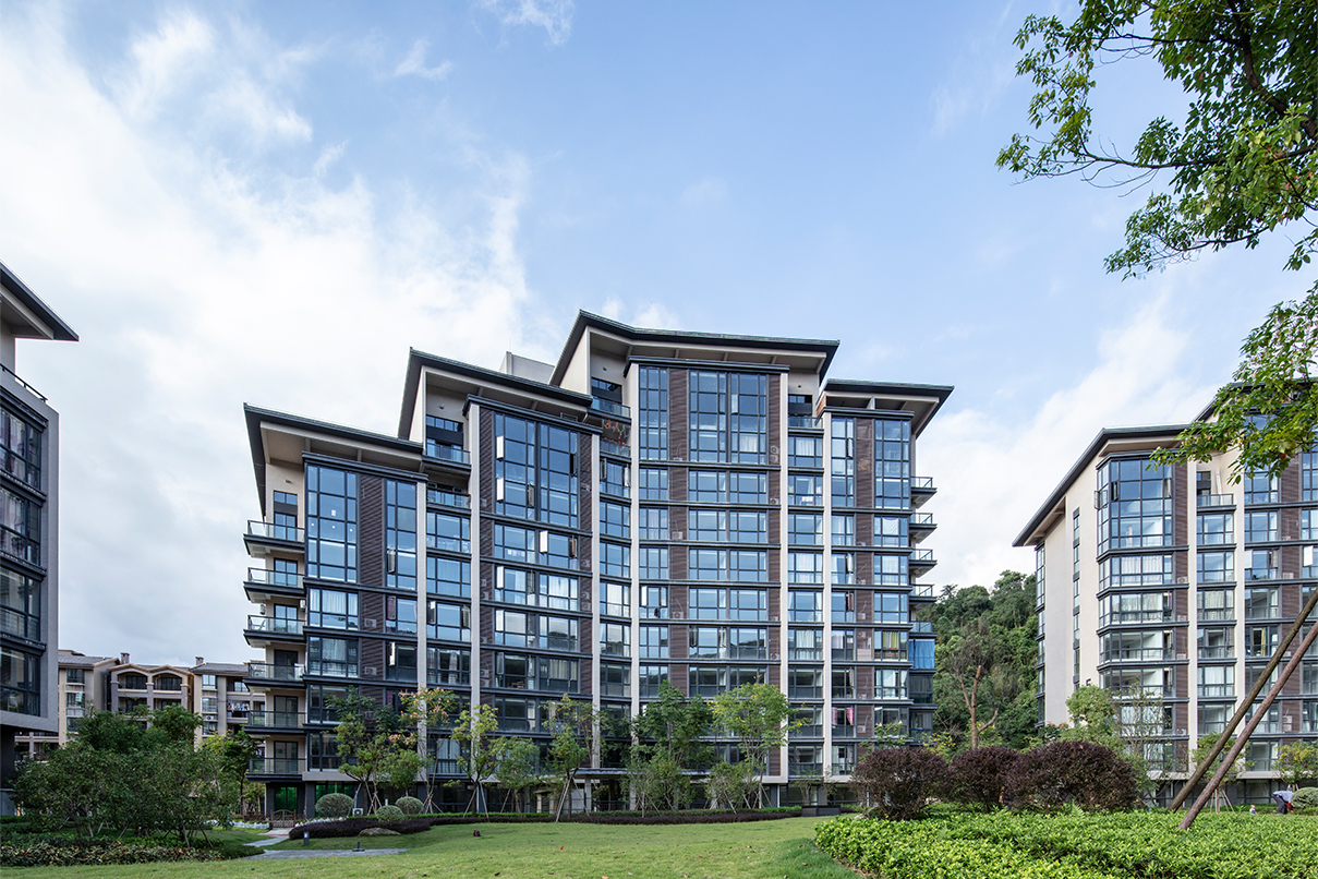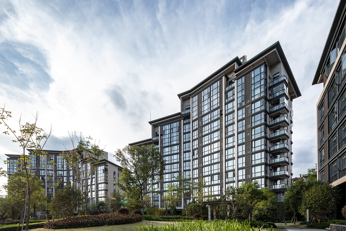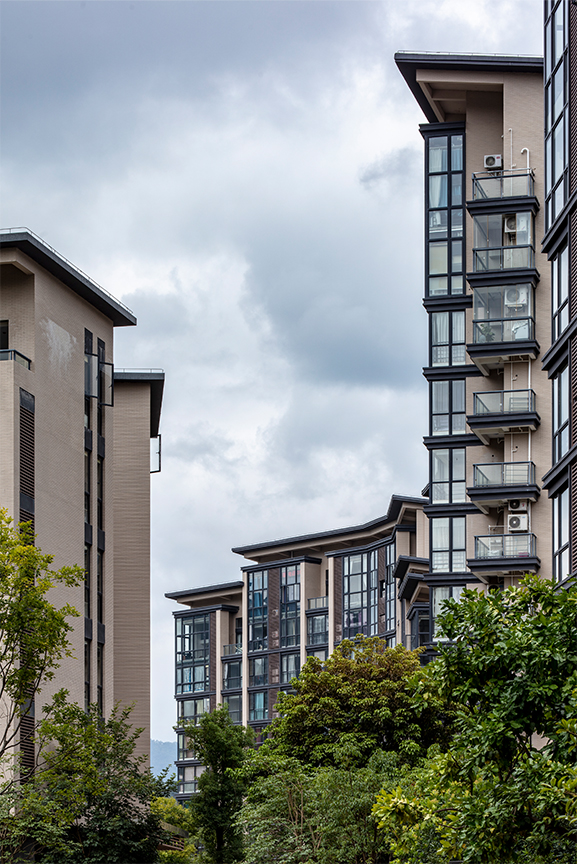 秉承新亞洲建筑風格特點,項目建筑單體形體簡潔大方,縱向關系非傳統(tǒng)的三段式分割。比例適度的基座內(nèi)收處理,中間形體外擴,凸顯新亞洲風格特點。 建筑群體通過層層的退臺形成起伏的天際線變化與遠處山景呼應。建筑設計突出建筑形體的簡潔明快,同時,加上精致的構件加以點綴,體現(xiàn)建筑的優(yōu)雅感與精致感。建筑材料采用磚、木、石、水泥、鋼、玻璃六種材料組合,打造質(zhì)樸、自然的建筑風格,強調(diào)保持材料本色,給建筑帶來了一種自然的美。