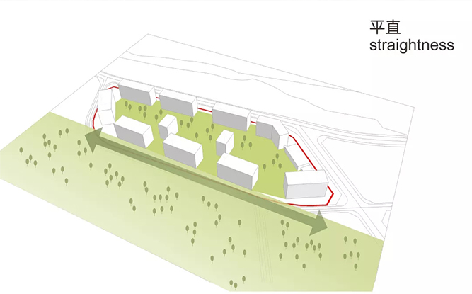 在規(guī)劃設計中,建筑沿基地的周邊布置,對外充分親近南邊景觀與北側(cè)山景,對內(nèi)則圍合成一個超大尺度的內(nèi)向的綠化花園空間。